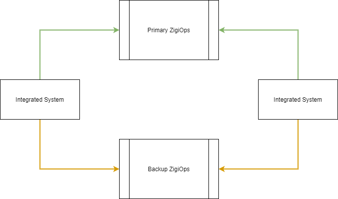 This scenario expands the main Failover solution described on the High Availability page. It has the same prerequisites and requires the ZigiOps servers to be configured the same way.