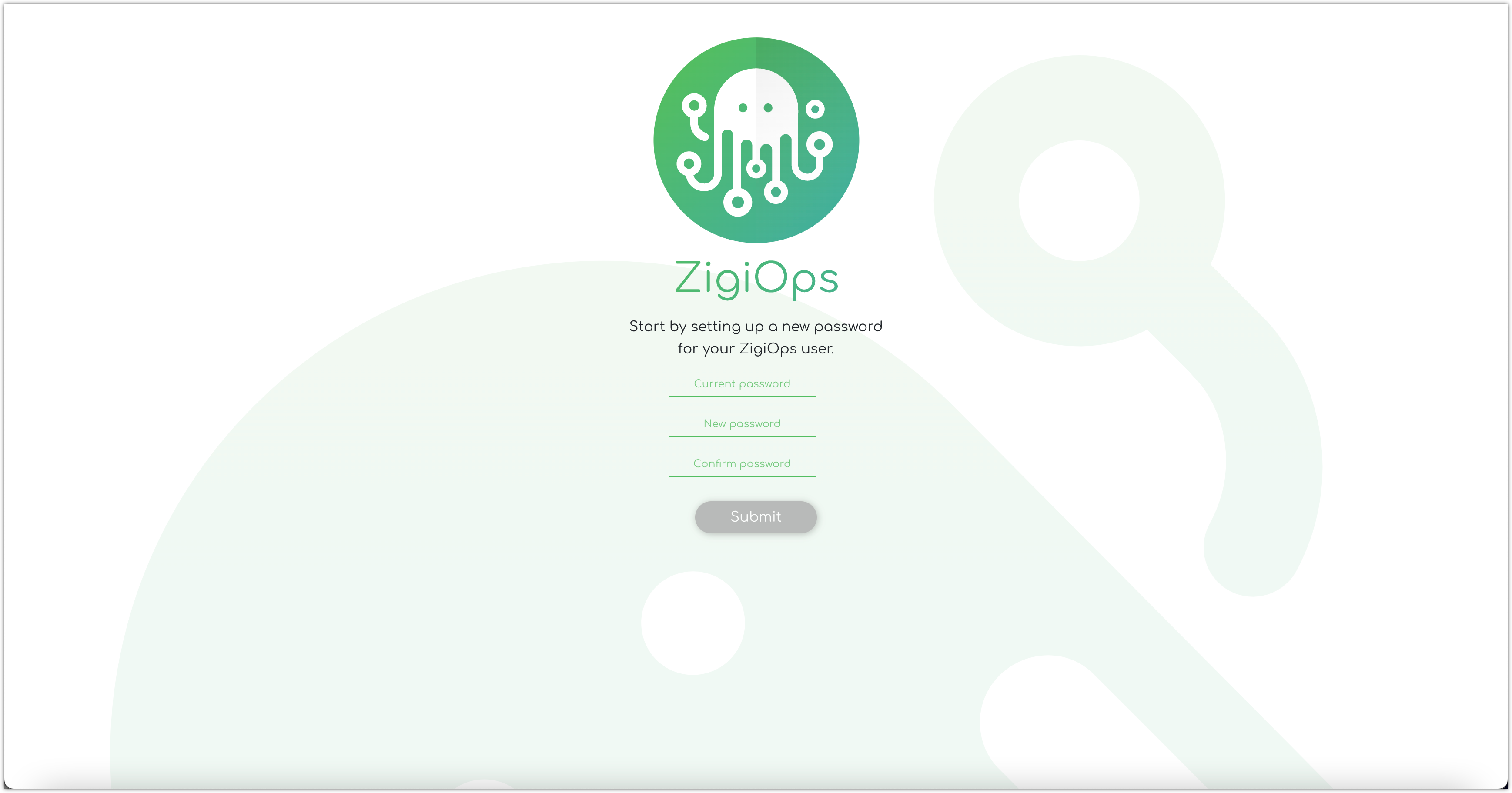 HTTPS://<IP/FQDN>:<PORT>. For example,https://zigiops.example.com:8585.Log in using the default username and password (listed in the table below), and you’ll be placed on the change password screen.