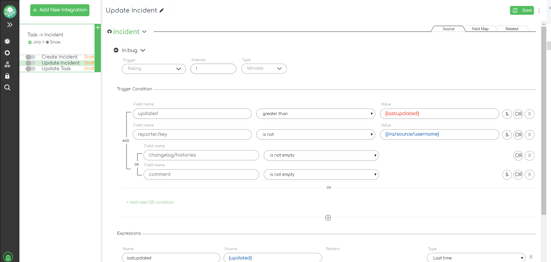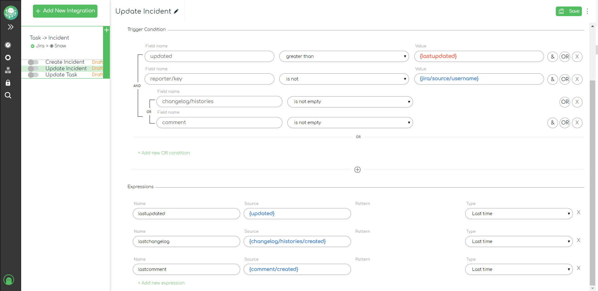 We will use these additional “Last Time” expressions in the Trigger Conditions section in the next steps. This will allow us to collect only Jira tasks that have been modified or the ones that have new user comments.
