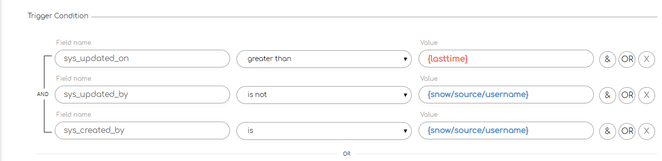 In this operation, we will use the {sys_updated_on} field from ServiceNow as a reference for our lasttime variable.