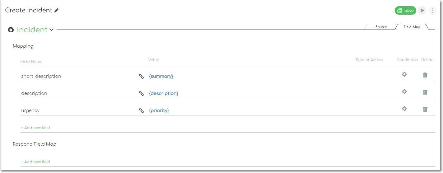 In this section, we can create the field mapping for this operation. We've defined 3 fields in this example integration.