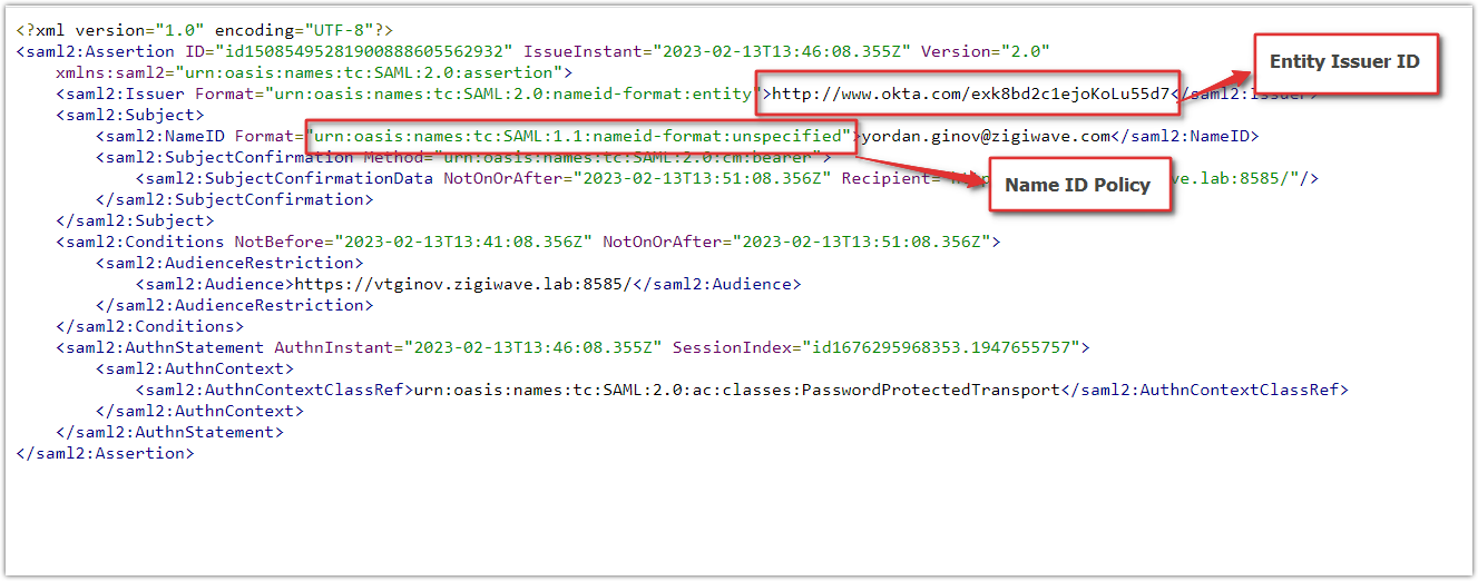 http://www.okta.com/exampleIssuer.Name ID Policy - Input the name ID policy from the OKTA's SAML Assertion XML.