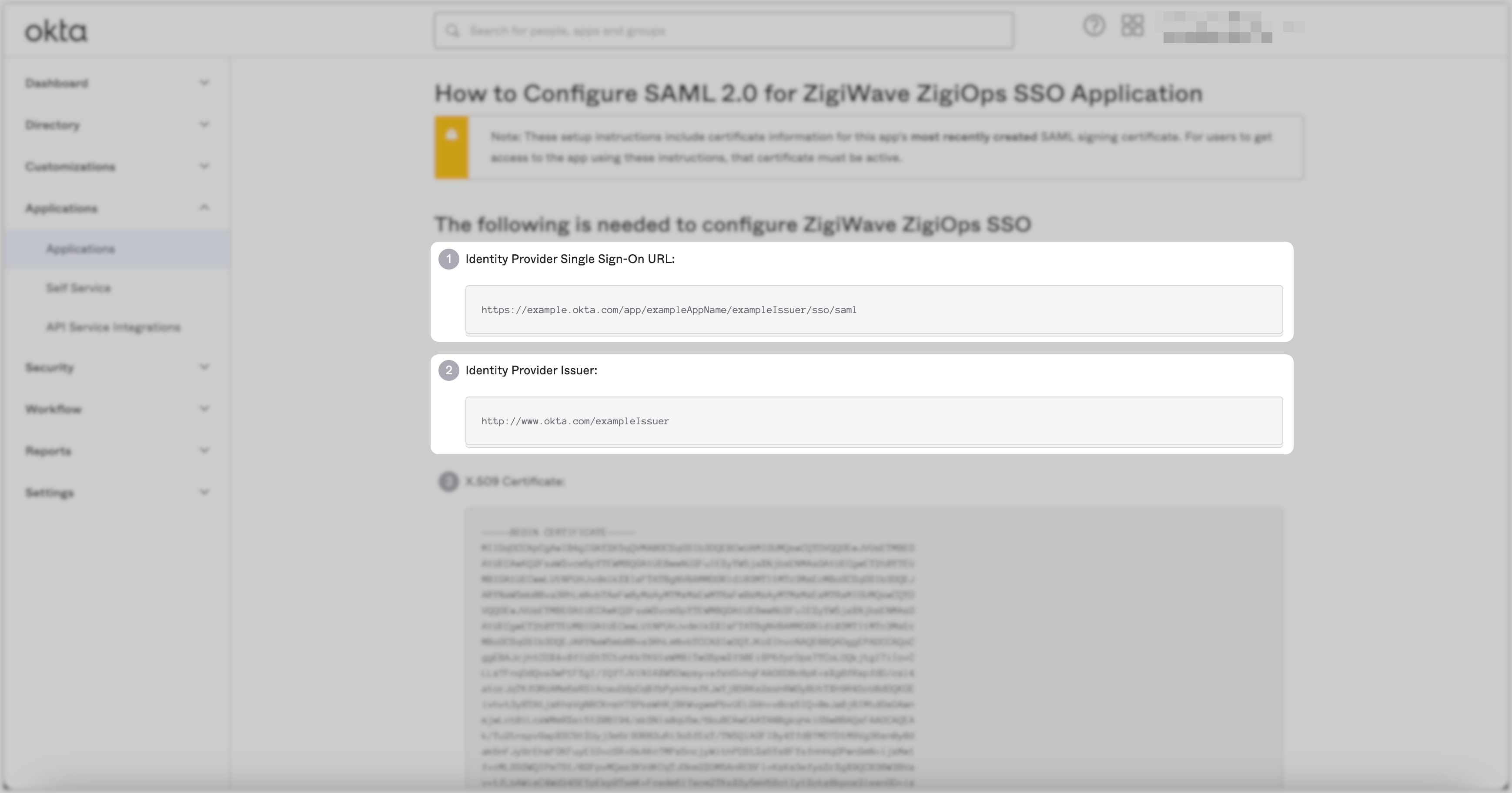 Use the data obtained by OKTA to configure the ZigiOps SSO settings.