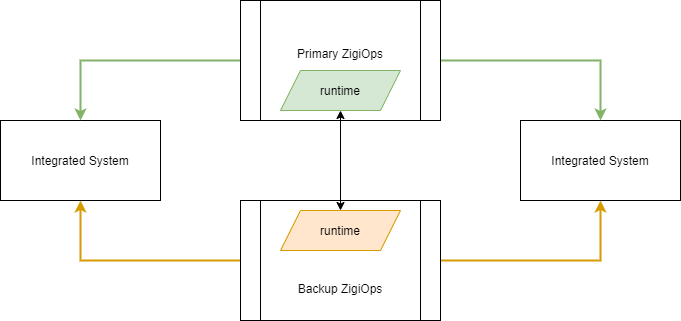 There could be any number of ZigiOps servers prepared to take over from the Primary one, but only one could be active simultaneously. Suppose the failover is performed to the Backup ZigiOps server. In that case, the Primary one remains inactive until a further decision is made to manually return the operation state to it using the same procedure.