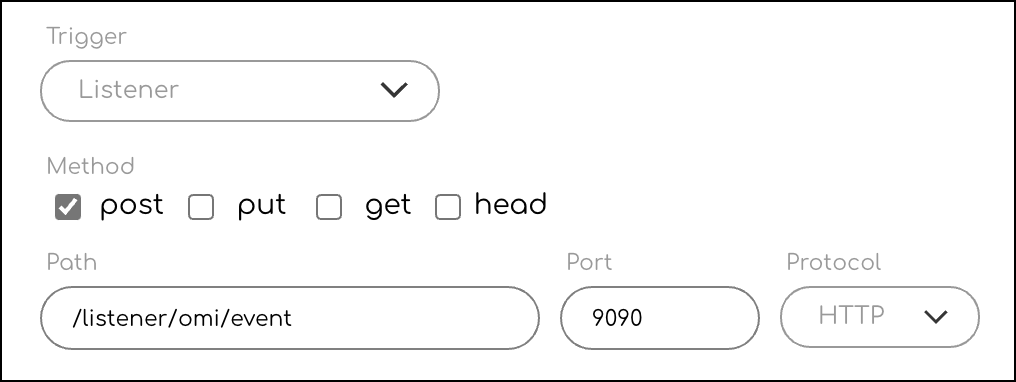 Send string → Use the GET method against a PATH used in an integration action, i.e.,/listener/omi