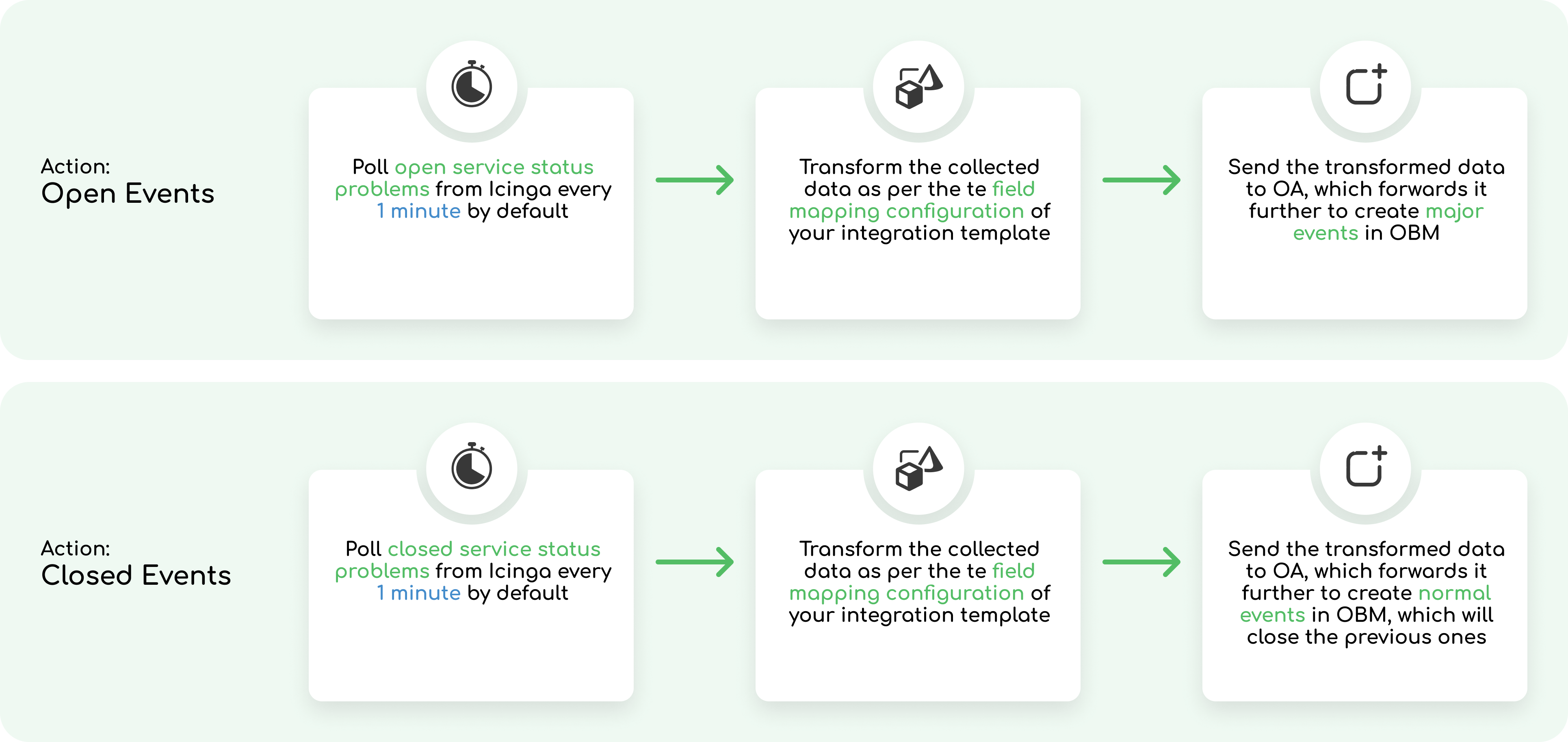 Icinga service status problems to OBM events