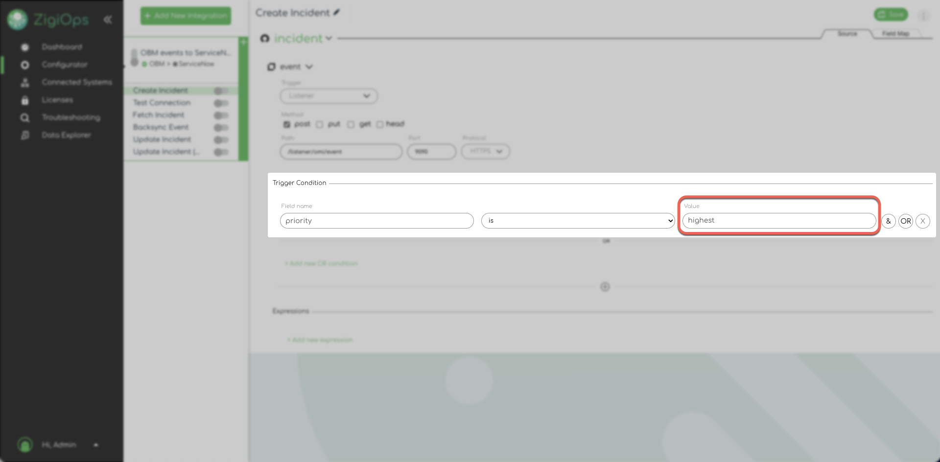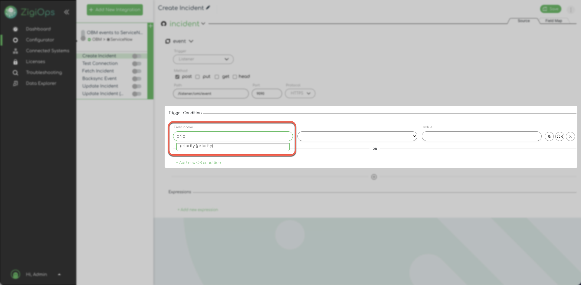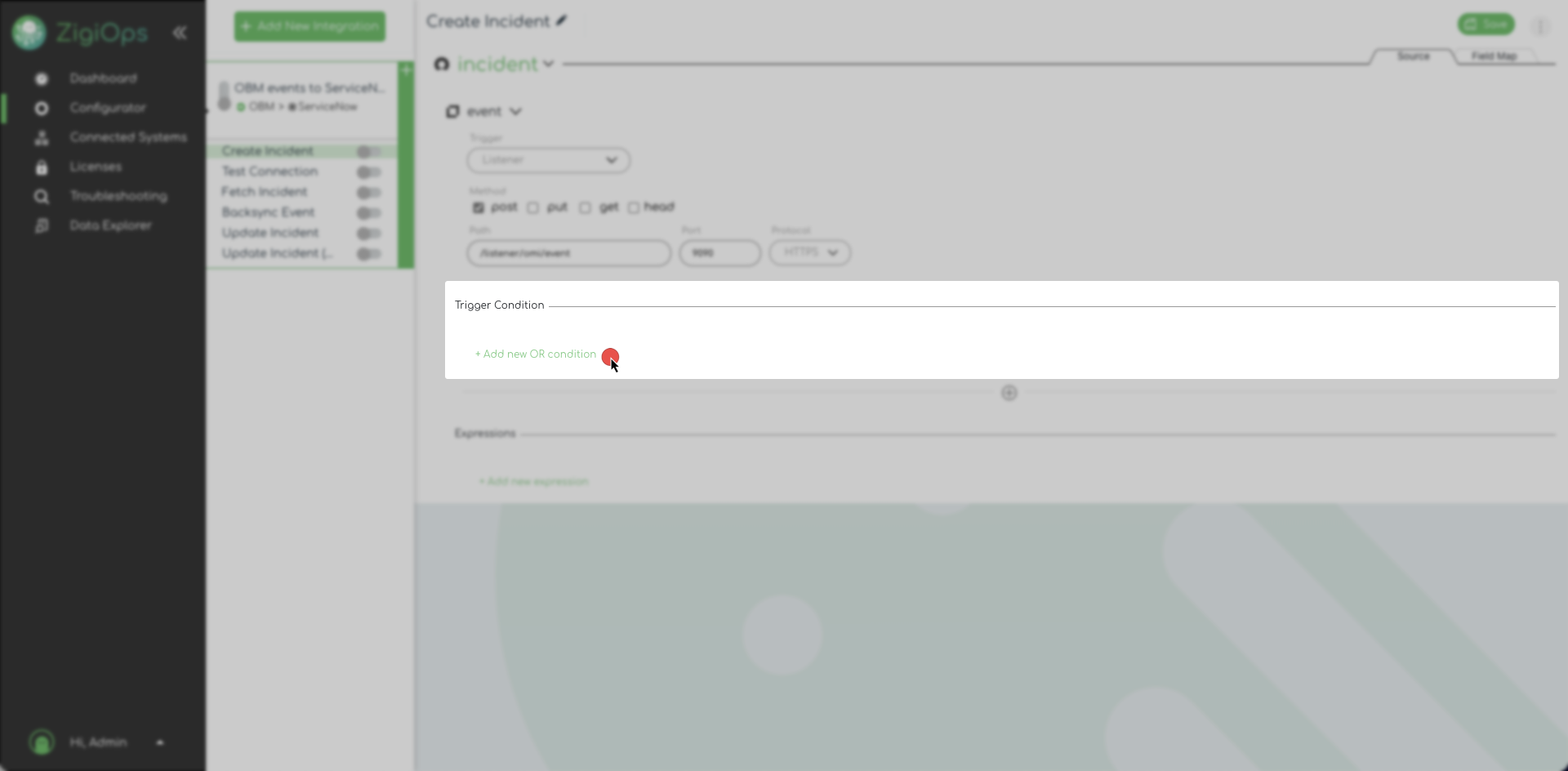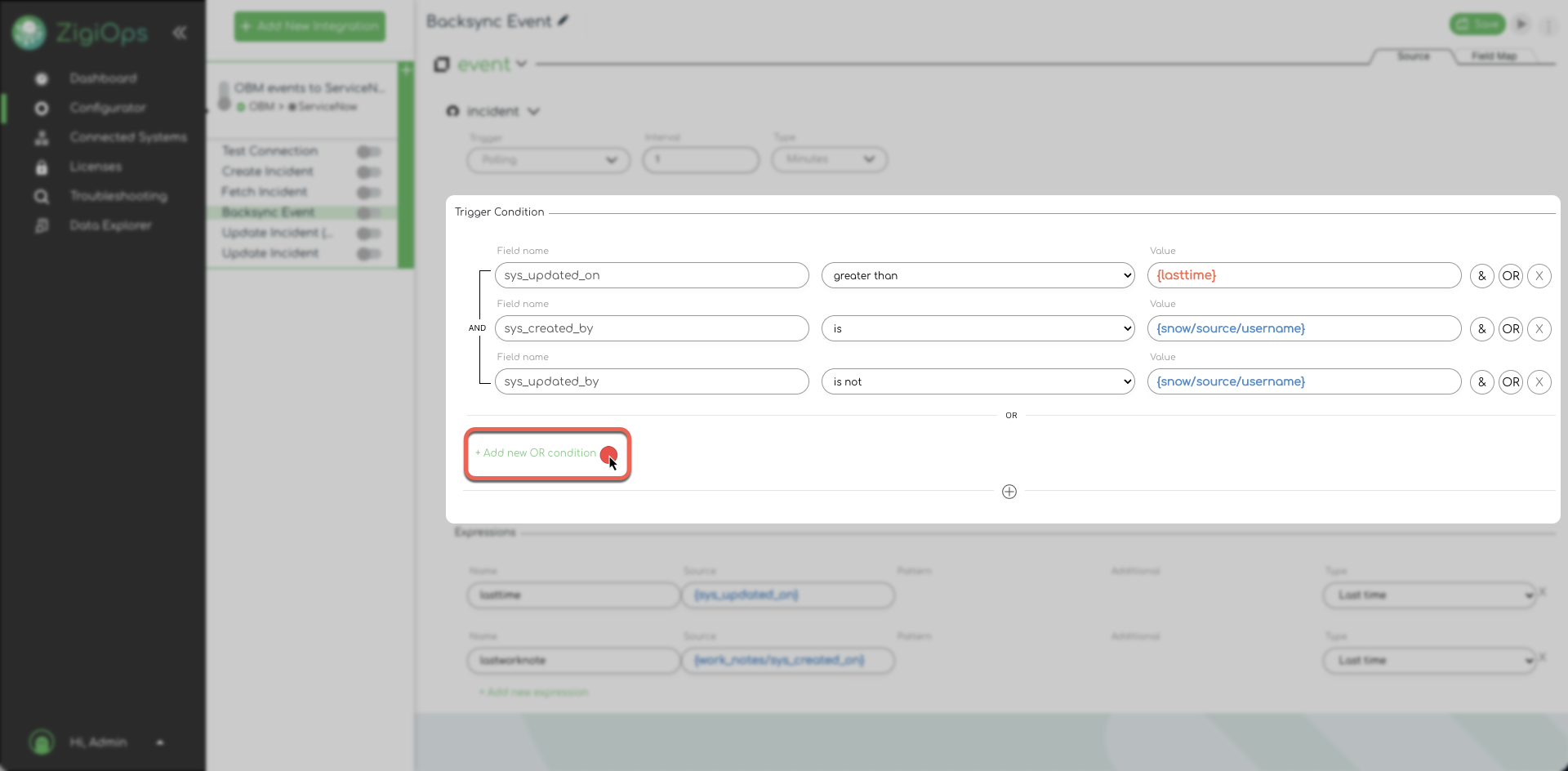 The ZigiOps supports building complex conditions with logical operators, as shown below.