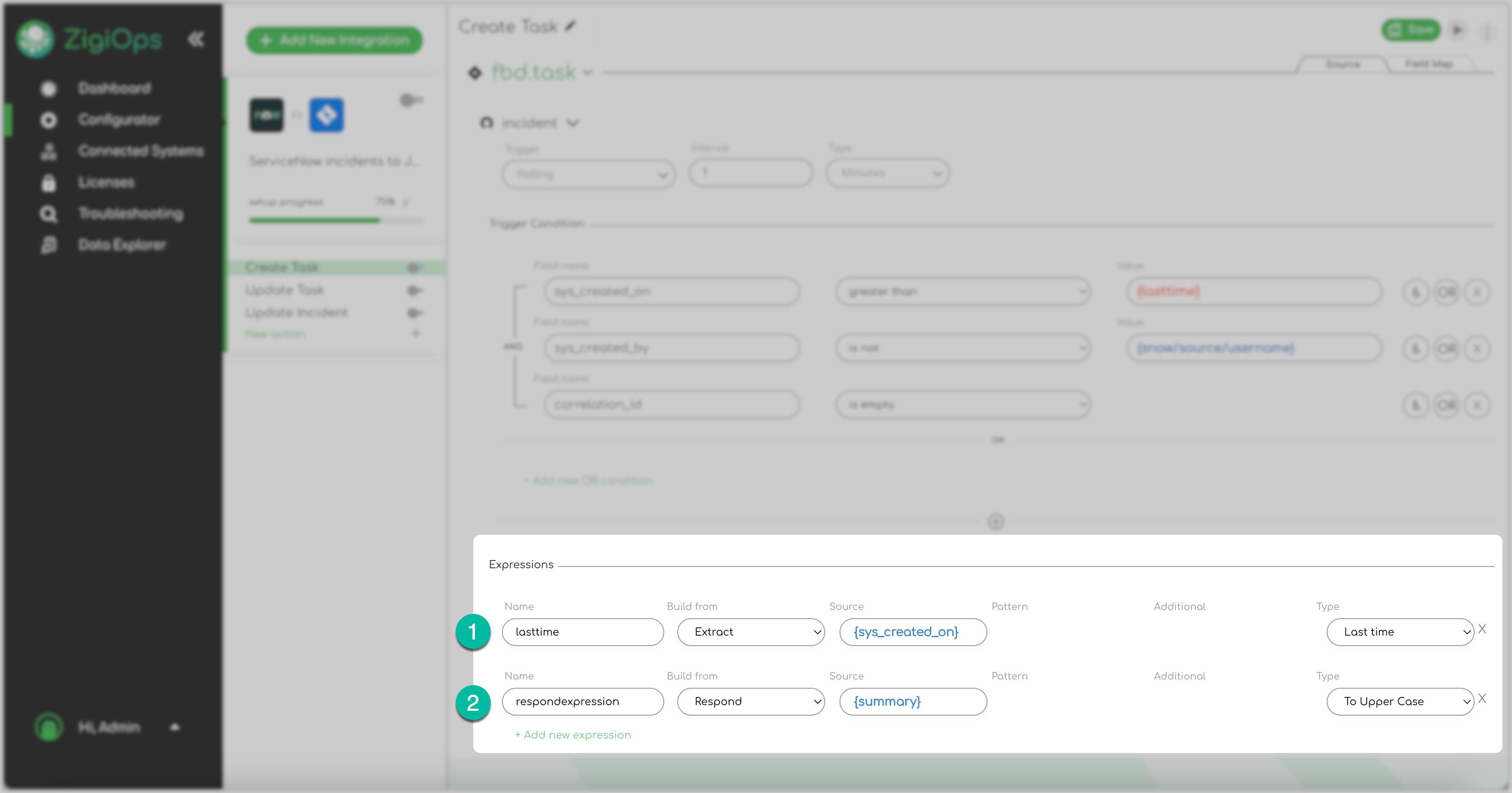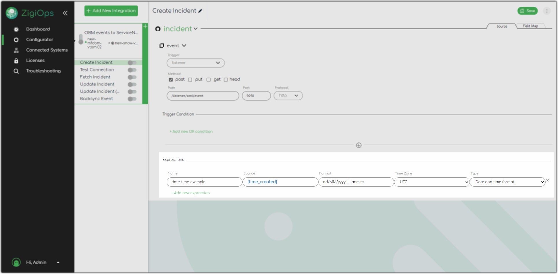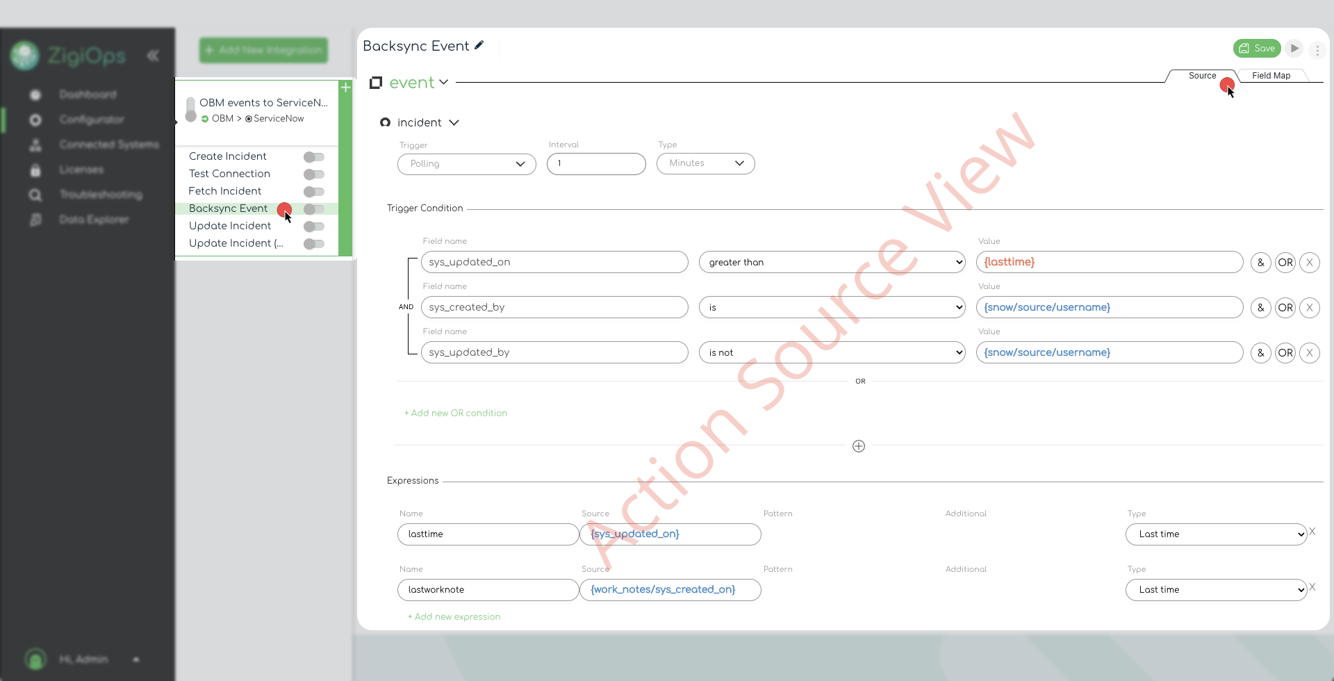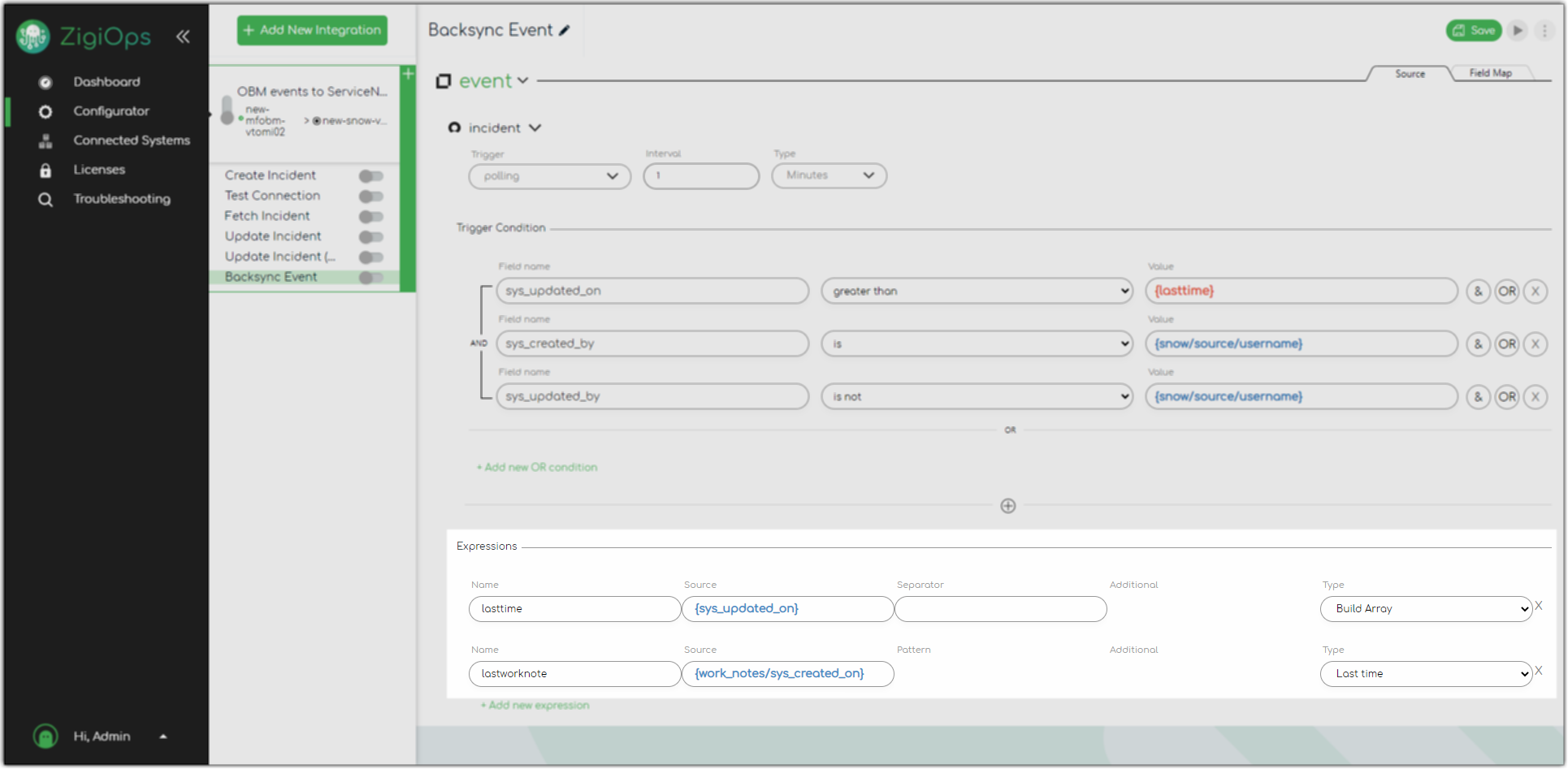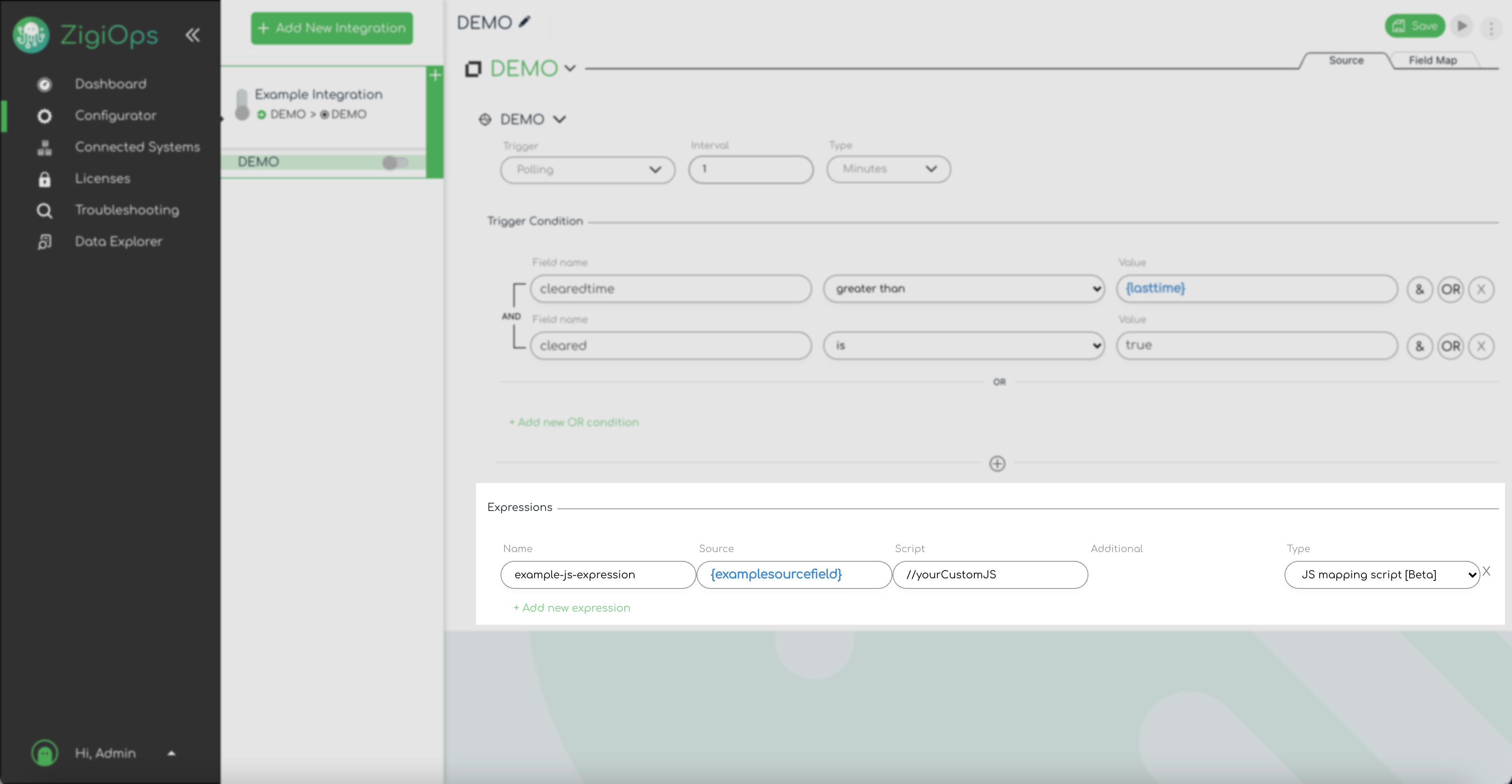 The ZigiOps supports building complex conditions with logical operators, as shown below.