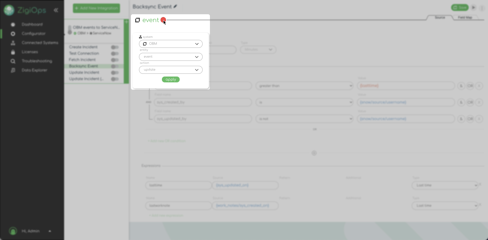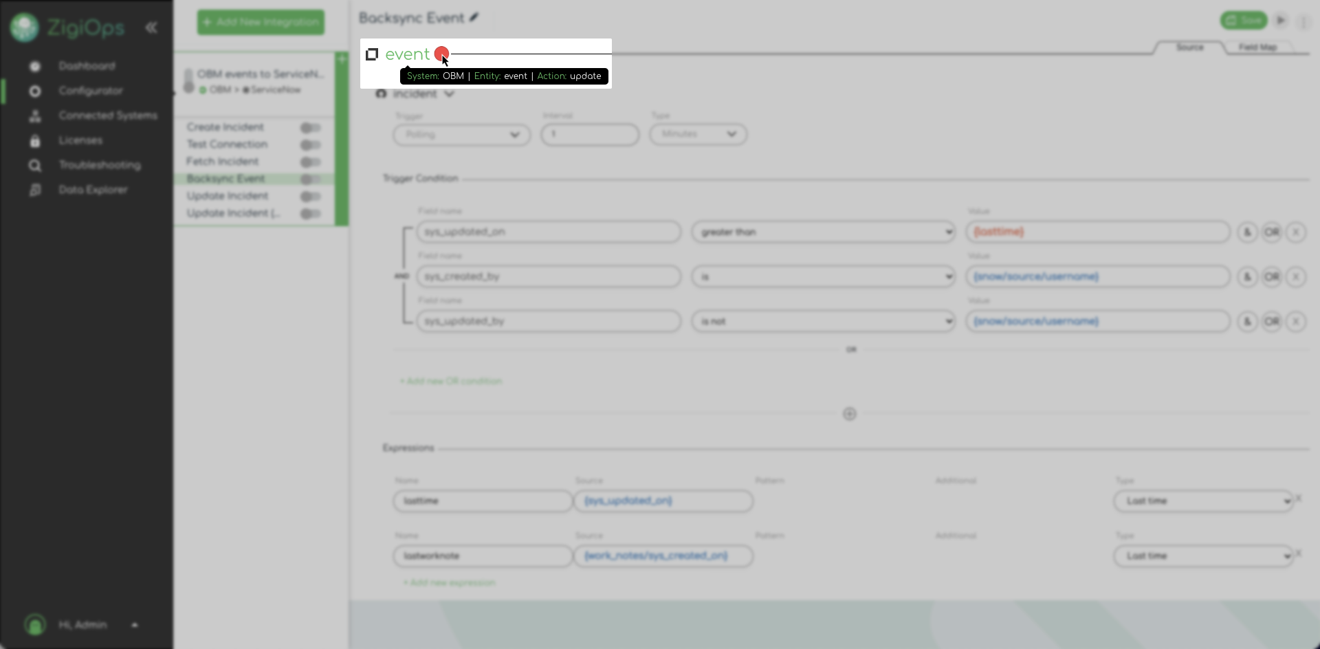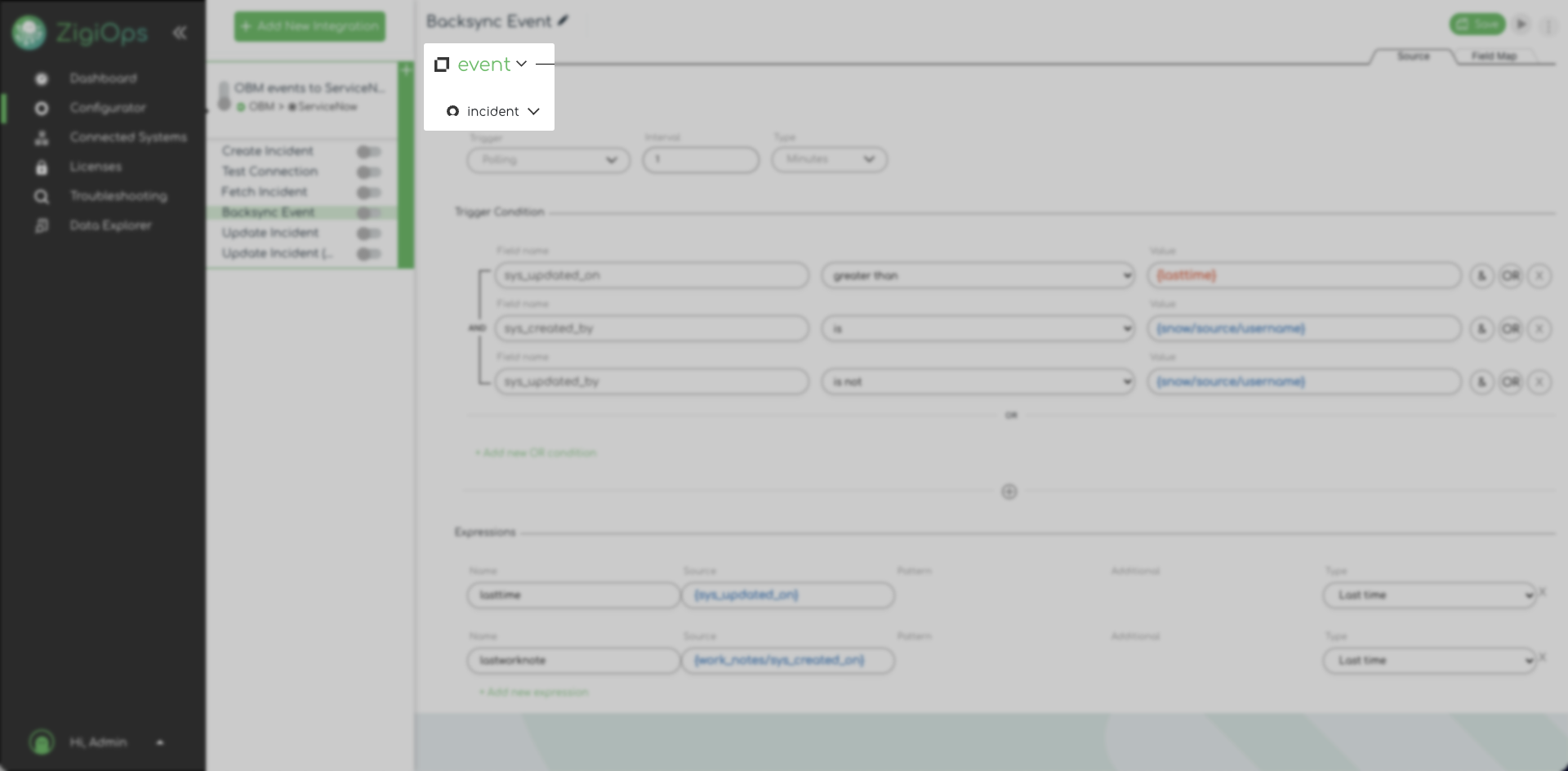 A Workflow always collect a particular type of record from one system and create another kind of data on the other system; we refer to these types of records as Entities. Such entities could include ITSM records, such as incidents and problems; ITOM records, including events and alerts; and CMDB records, comprising configuration items, hosts, nodes, and applications. The Entity component holds the configuration based on which ZigiOps determines the entities to be integrated for the selected System Instances. If an Entity is missing from the list, you may need to review the system’s users' permissions and/or the system’s connectivity.