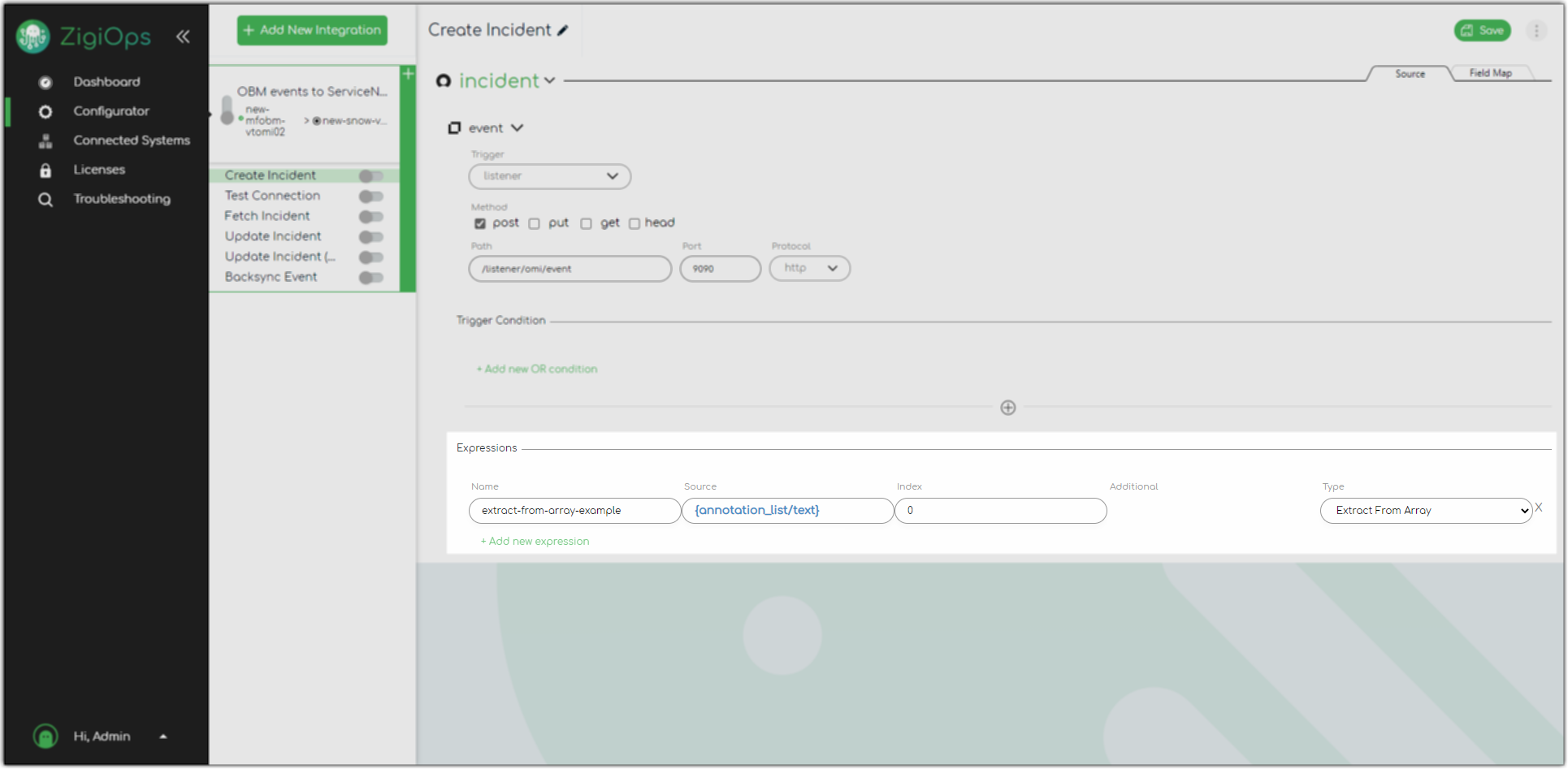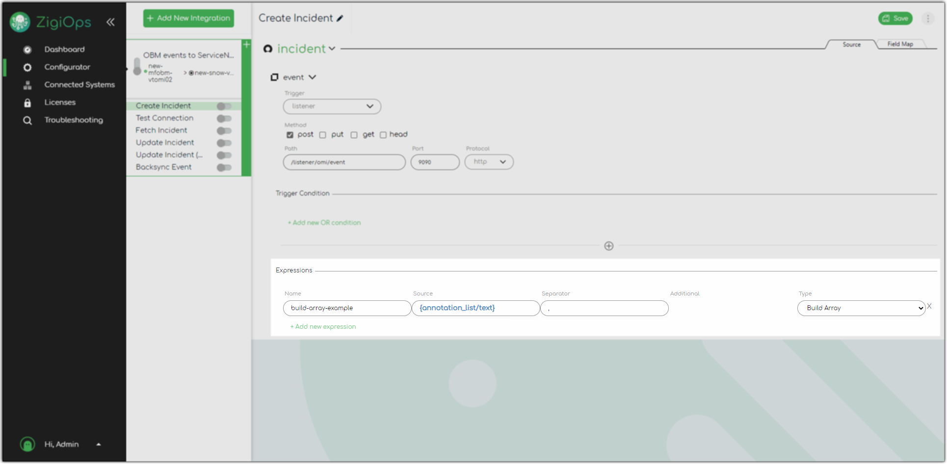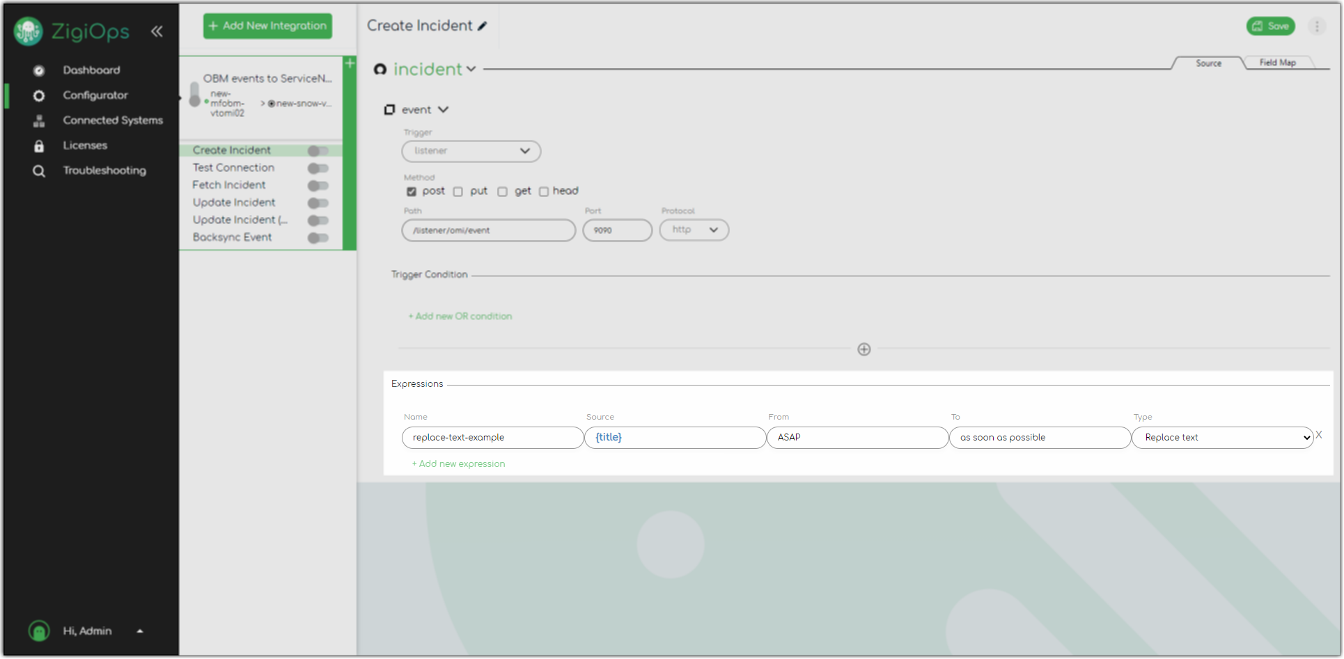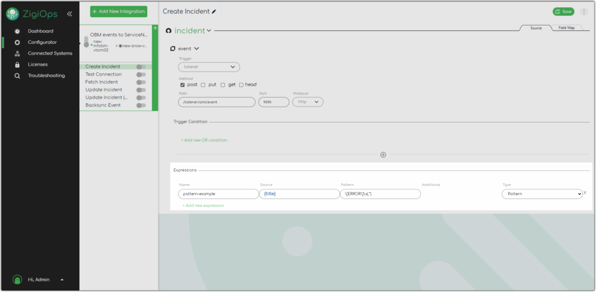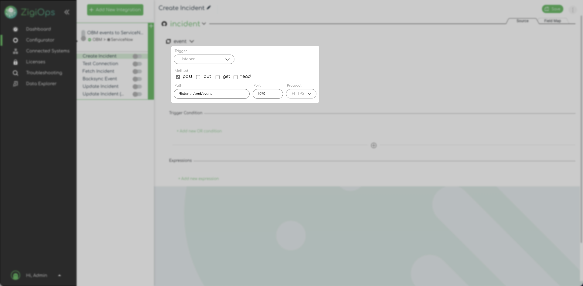 Enabling the action starts the webserver listener, and it listens for incoming data at the https://zigiops.example.com:9090/listener/omi/event endpoint and accepts POST HTTP requests.
