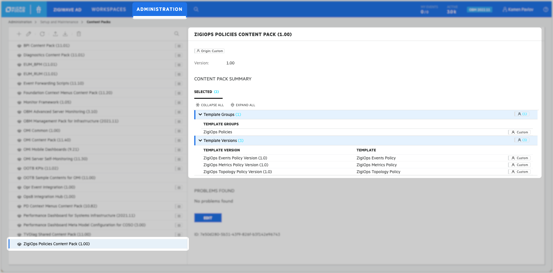 Download the ZigiOps Policies Content Pack from https://download.zigiwave.com/zigiops/contentpacks/obm_cp_zigiops_policies_1.00.zip.