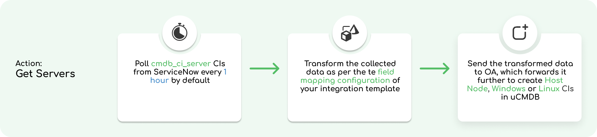 When ready, ZigiOps transfers the data through an OA, and creates a Host Node CI in uCMDB.